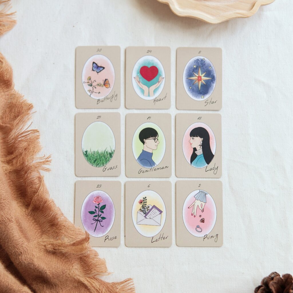 夜明け前の夢から時を超えてこぼれ落ちた、アンティークのようで愛らしい占いカード。カードをひらけば始まる、愛と幸運な時間。